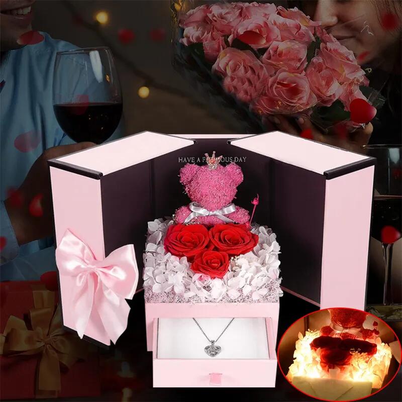 Bear Preserved Flower Double Door Rose Jewelry Box Romantic Gift