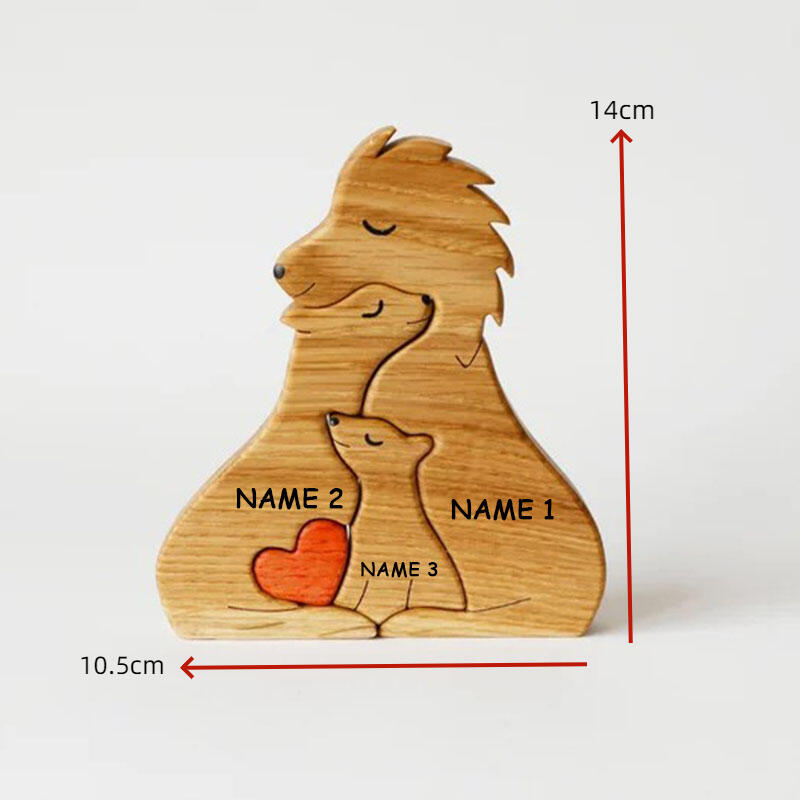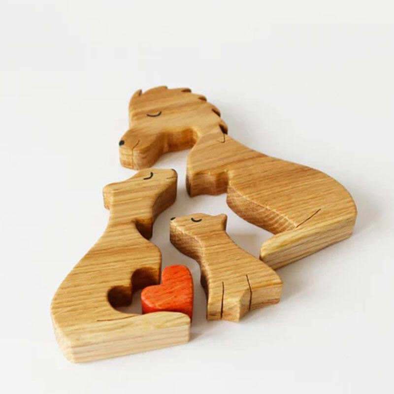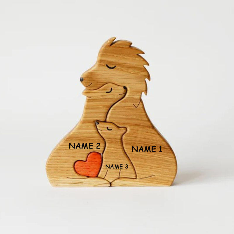 Each of our wooden puzzles is made from high-quality wood and is carefully designed and crafted. We pay attention to every detail to ensure each puzzle is of high quality and durability. One of the features of our wooden puzzles is the ability to customize them with family members' names. You can tell us the names of family members and we will use them to engrave the corresponding places on each puzzle piece. In this way, when you put the puzzle together, each family member's name will appear on the puzzle, showing the warmth of the family and making everyone feel belonging and cared for. We have designed a variety of animal shapes, such as bears, rabbits, kittens, etc. Each animal is carefully carved and painted, lifelike, full of childlike fun and cuteness. These animal-shaped puzzles will bring you a pleasant puzzle experience, while also adding to the decorative nature of the product, making it a beautiful addition to your home.