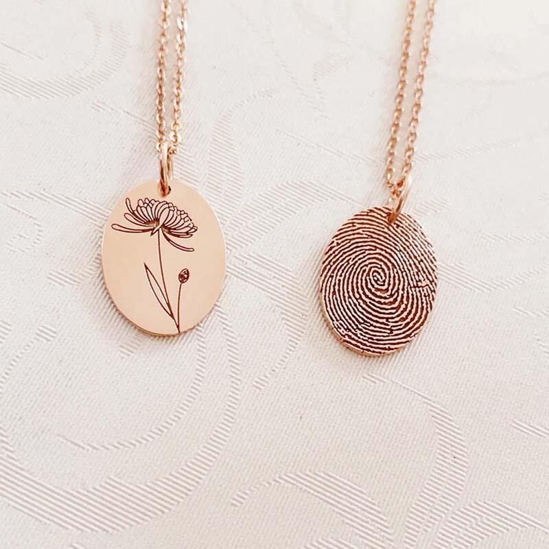 Personalised Round Fingerprint Necklace with Birthday Flowers
