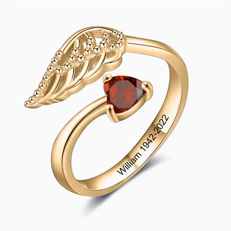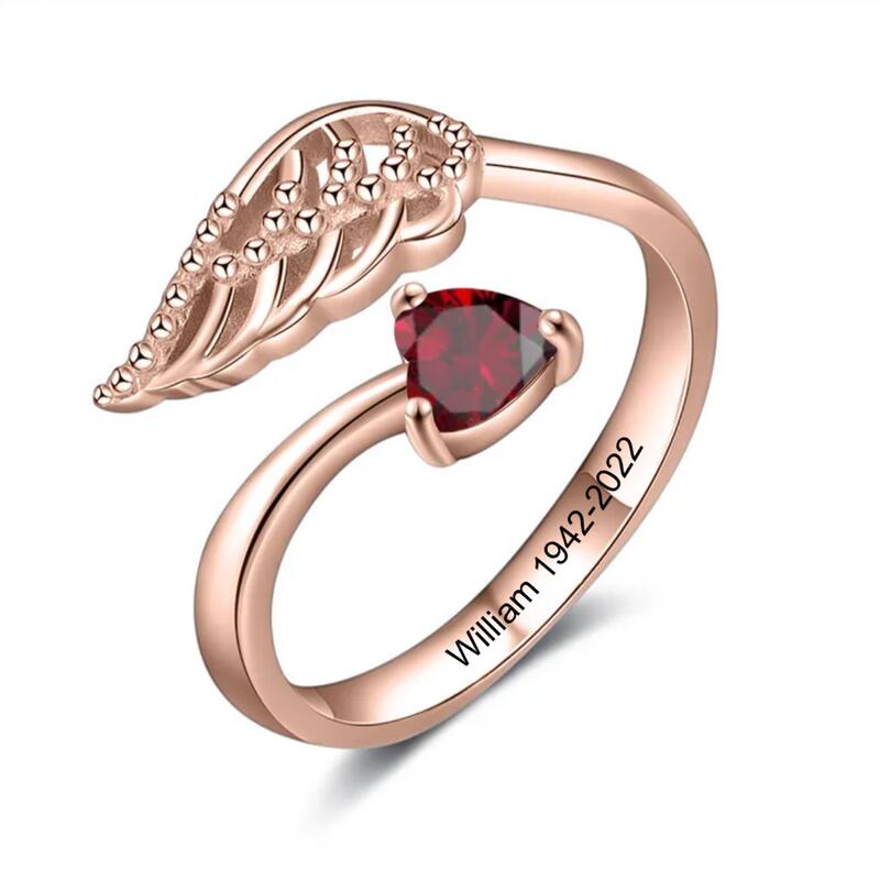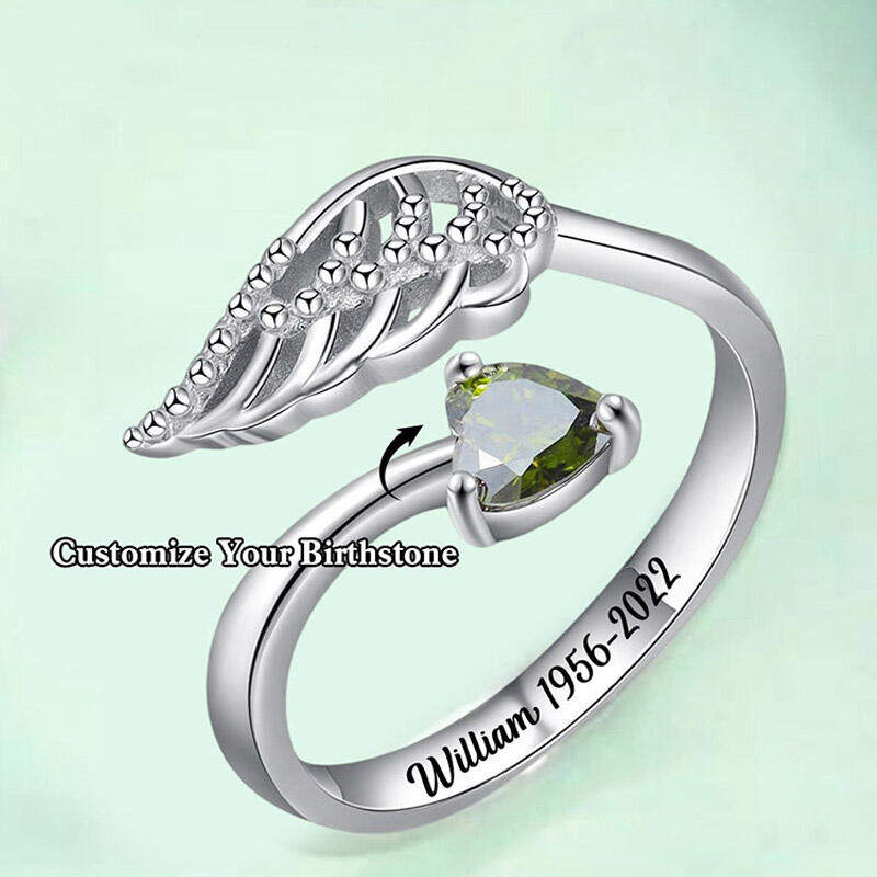 Personalized Birthstone Ring with Wings Memorial Gift for Loved Ones