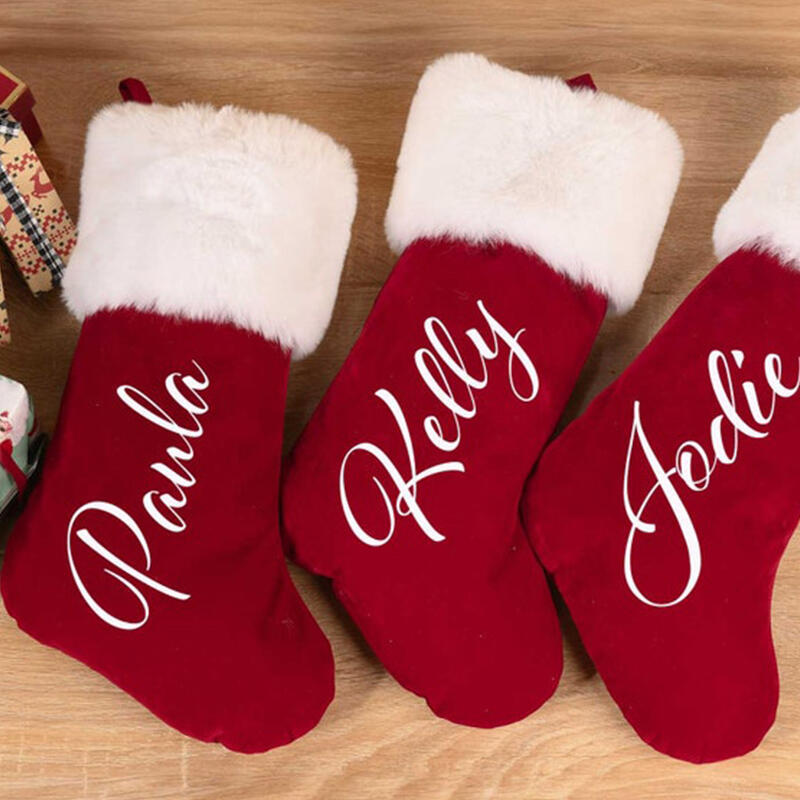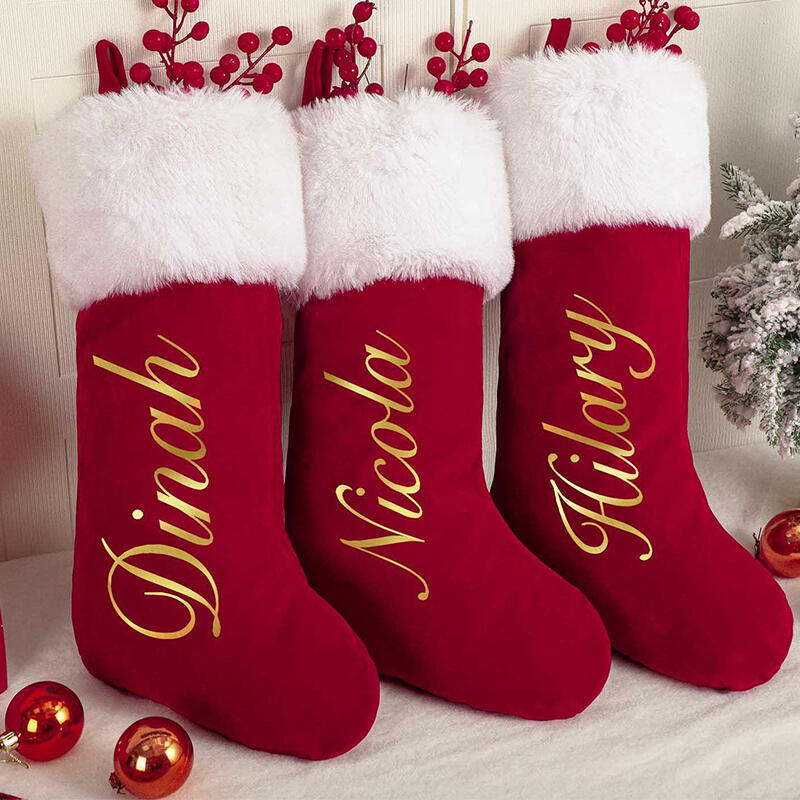 The most exciting thing is the personalized service we offer. You can customize the names of your family or friends on your socks to create a truly unique Christmas decoration. Imagine the warm and festive image of a row of Christmas stockings with the names of the whole family hanging over the fireplace! This is not only a decoration, but also a symbol of family reunion.