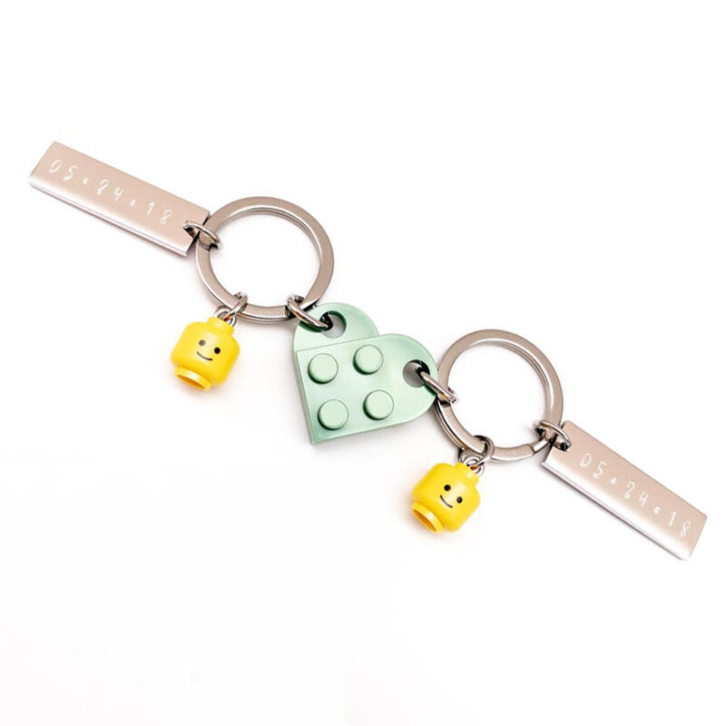 Personalized Couple Building Block Keychain With Engraving Christmas Gift