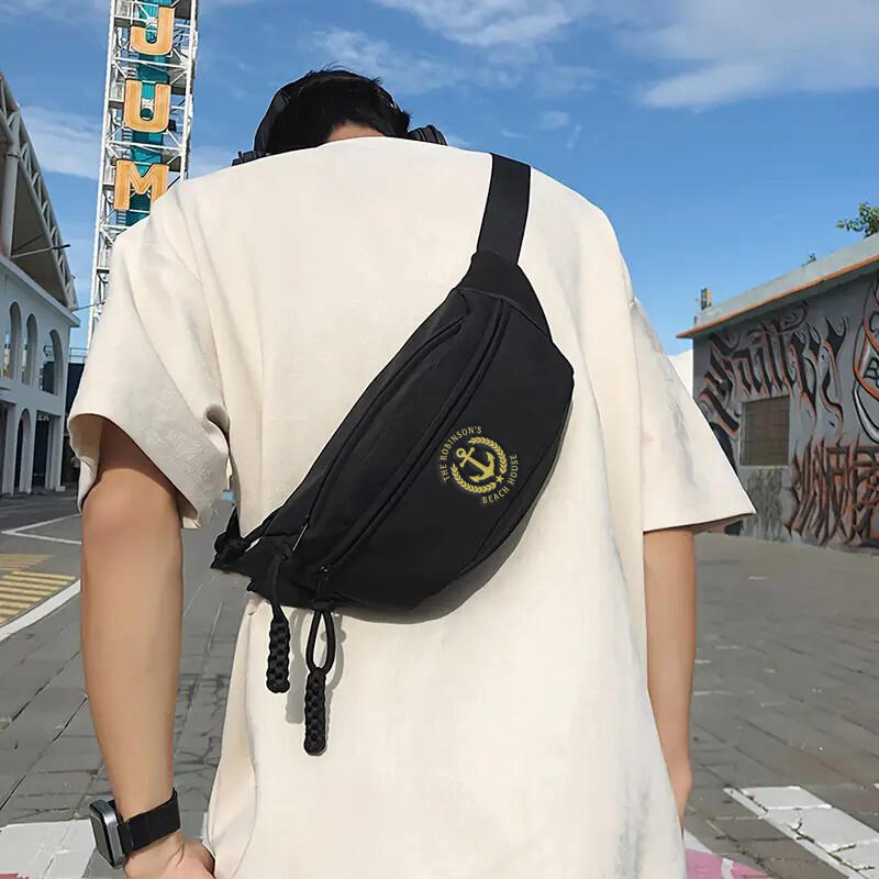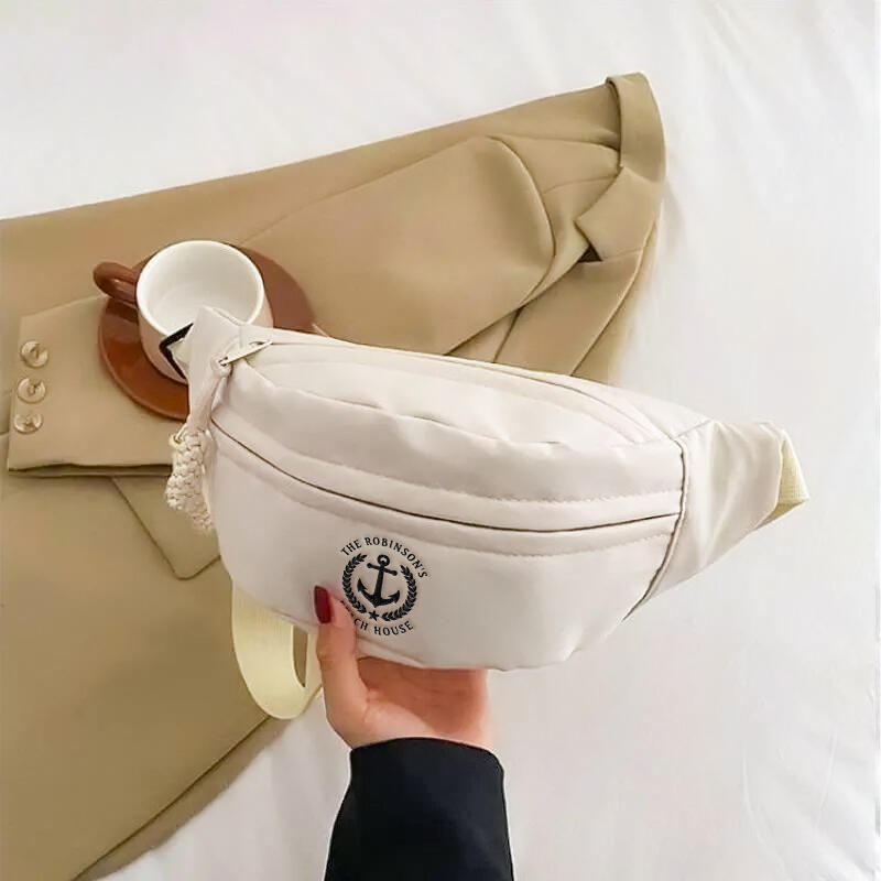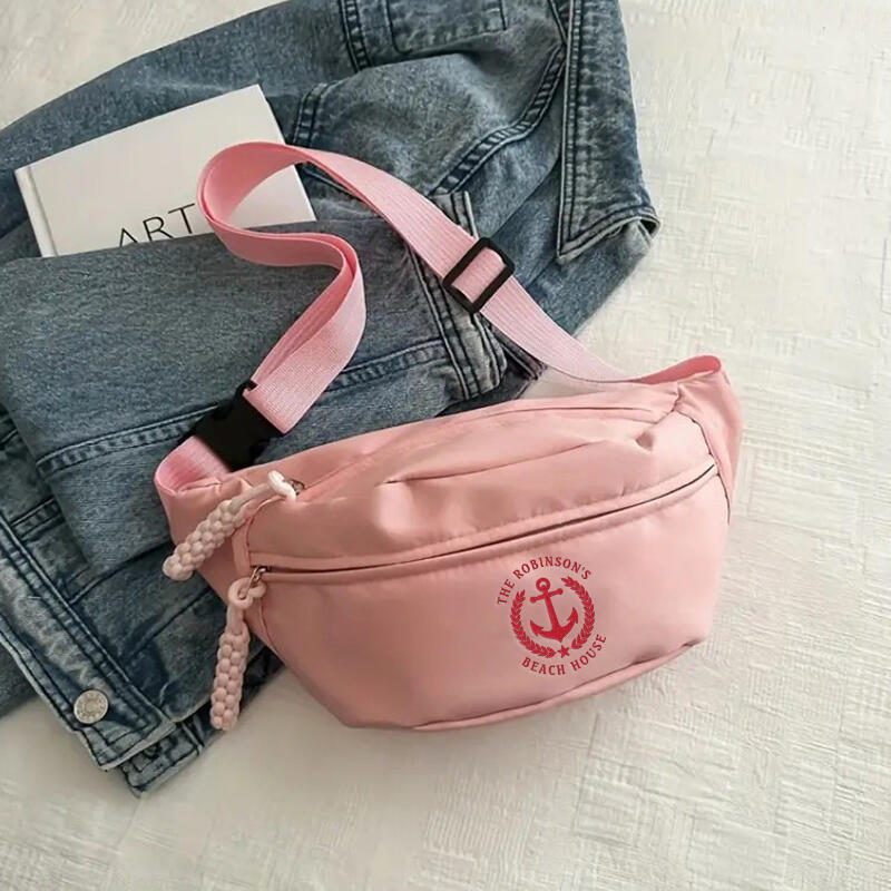 Personalized Engraving Embroidered Waist Bag with Anchor Pattern Best Gift for Kids