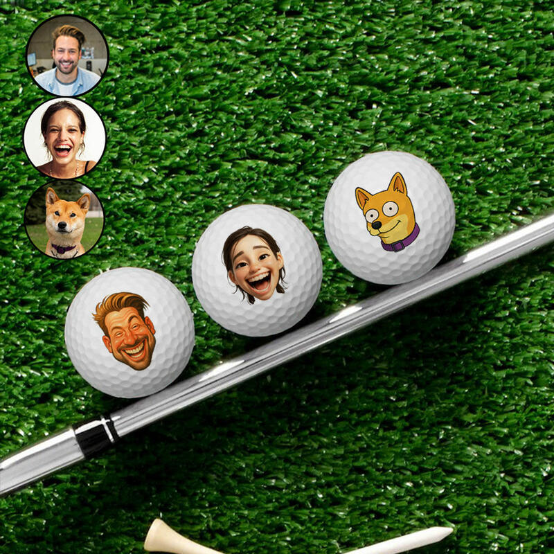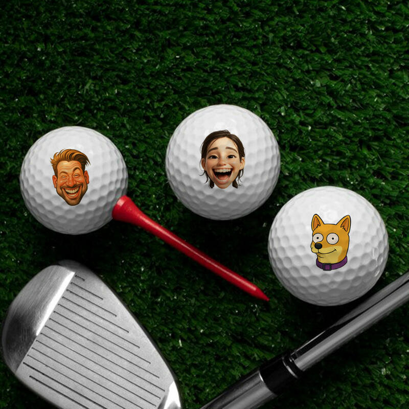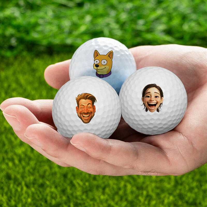 Personalized Golf Balls Set of 3 Cartoon Style Funny Face Desktop Decoration Balls for Dad