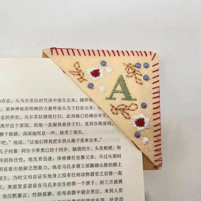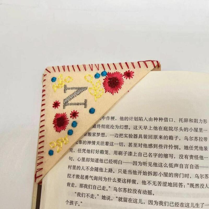 Personalized Hand-Embroidered Felt Triangle Bookmark With Custom Letters For Book Lovers