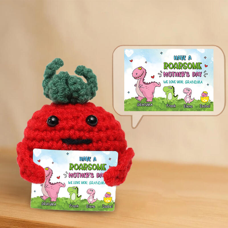 Personalized Handmade Crochet Doll with Custom Name Card And Dinosaur Pattern Lovely Gift for Mother's Day