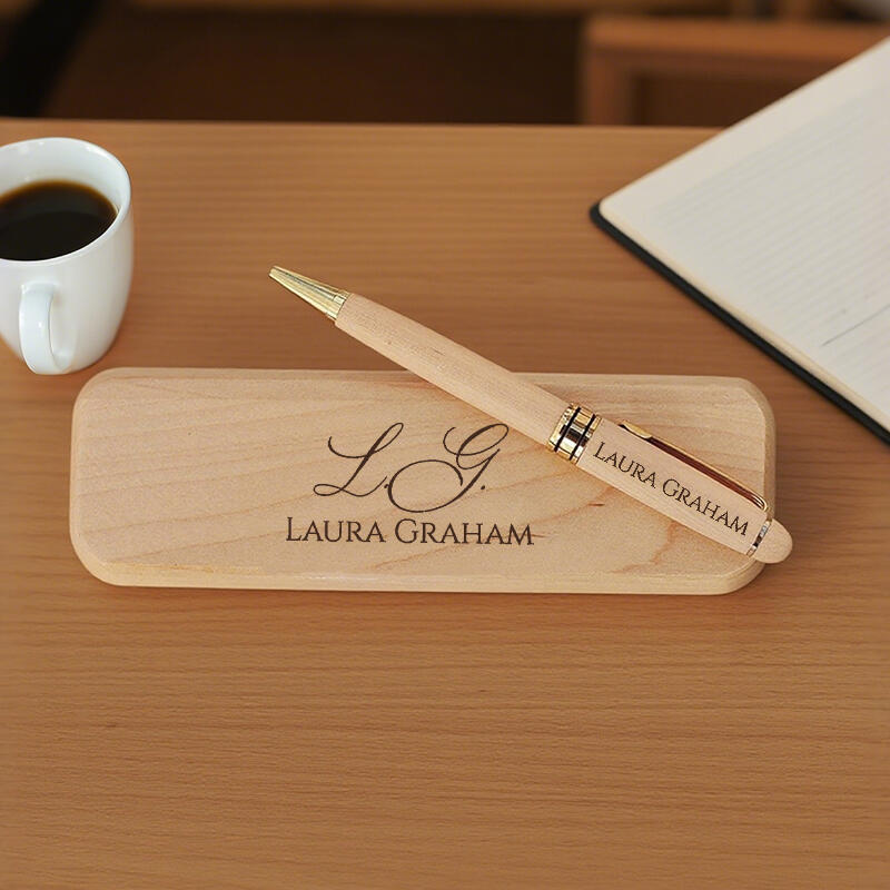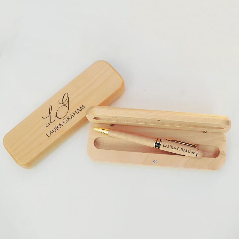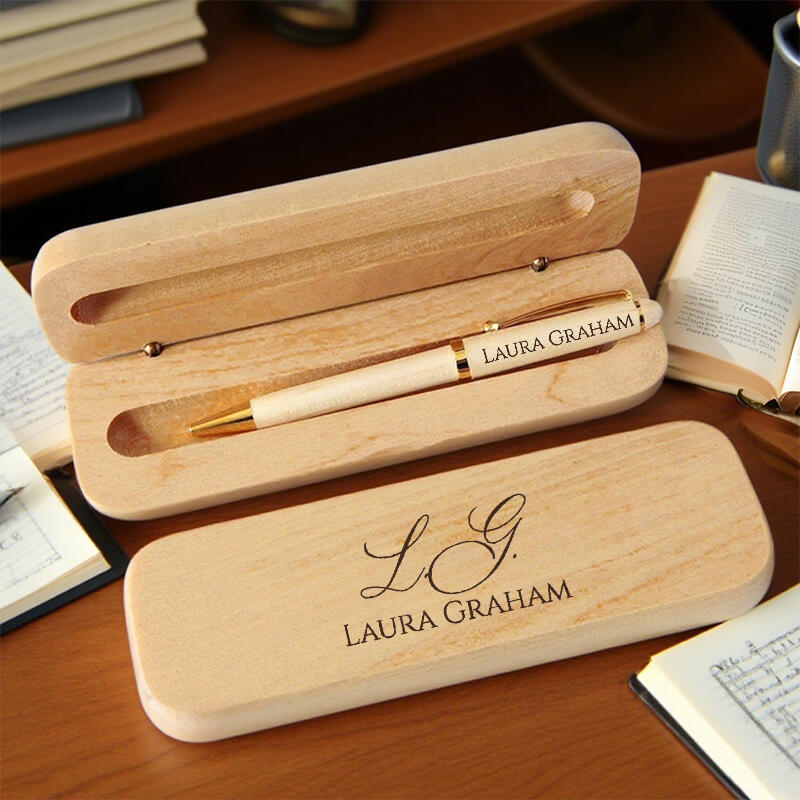 Personalized Pen Wooden Box Artistic Font Custom Name Design Simple and Elegant Gift for Friends
