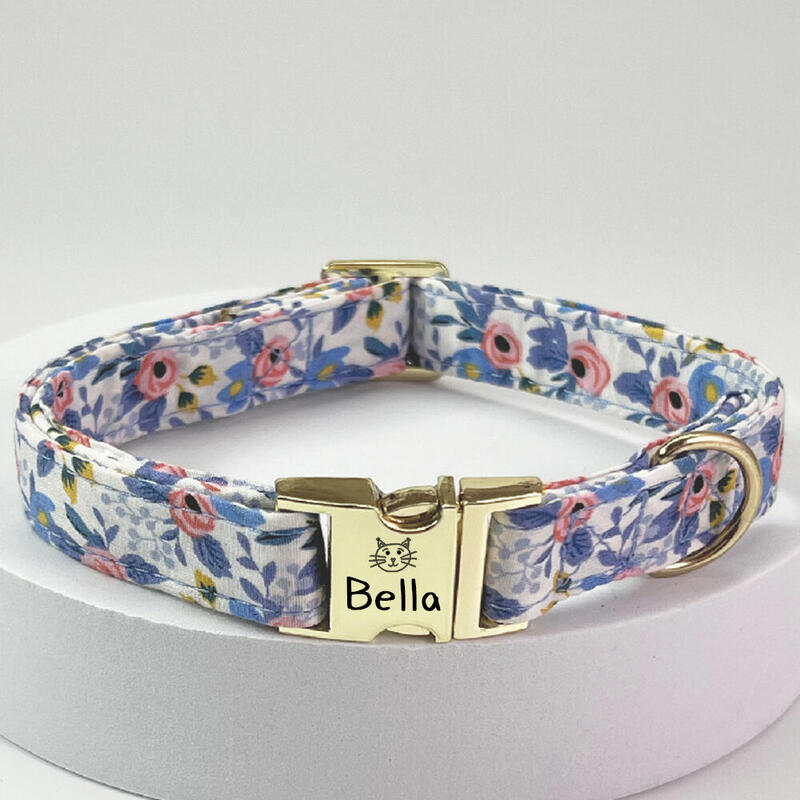 Personalized Cat Collar with Floral Pattern Adjustable Gift for Pet Owners