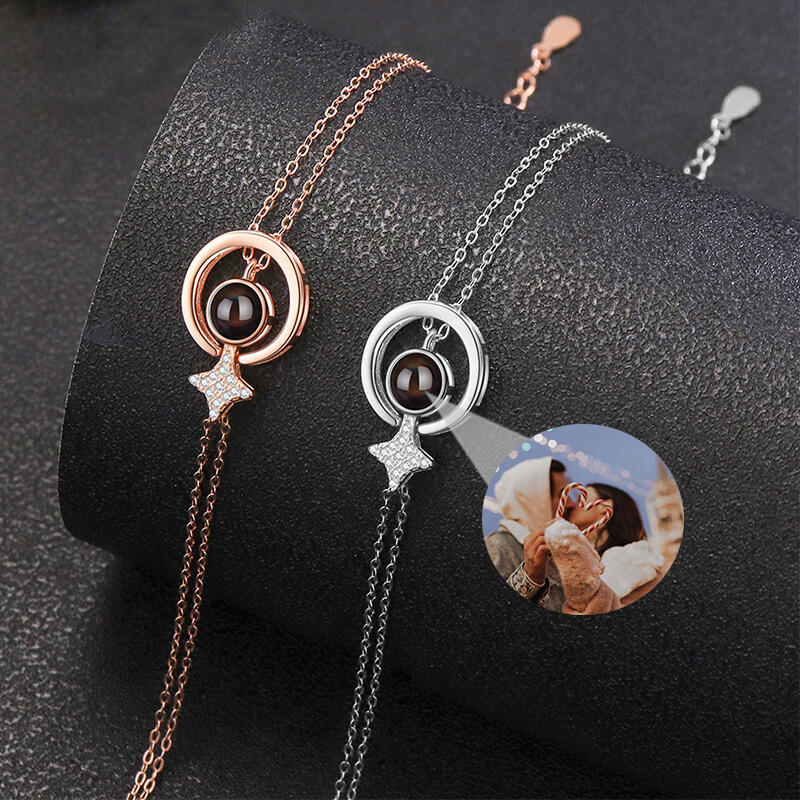 Personalized Projected Picture Bracelet With Double Chain Exquisite Anniversary Gift