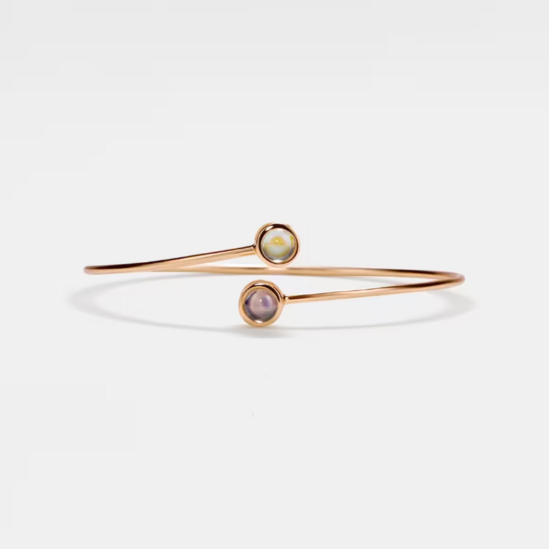 This customized projection bracelet engraved with your favorite photo will be a perfect accessory for you or a meaningful gift for someone you loved and the novelty will certainly surprise your gift receiver and all those who see it. You will be impressed at how vivid and alive the memory can be kept. No other jewelry can achieve this effect.
