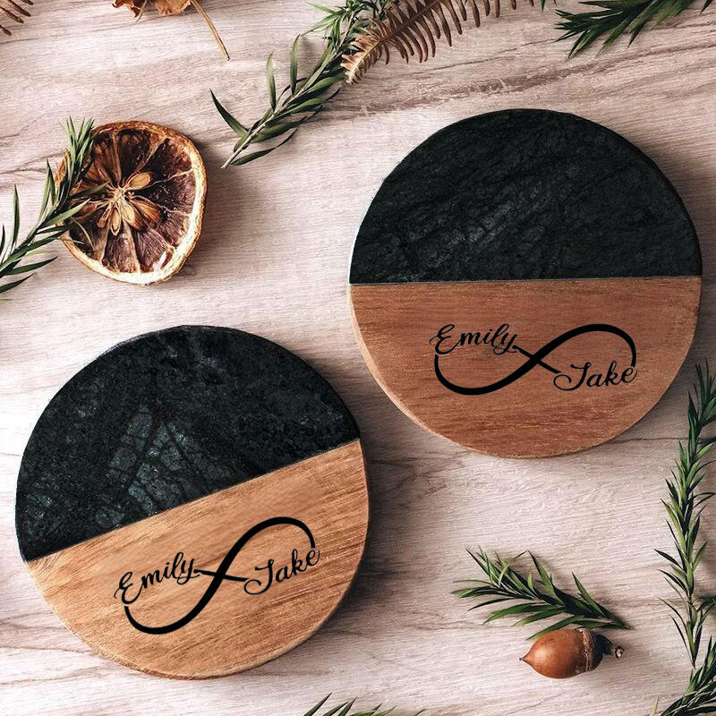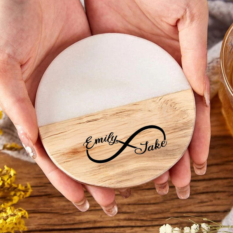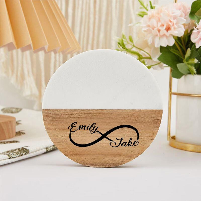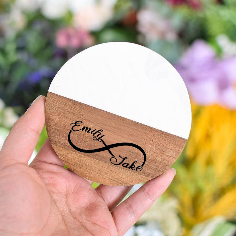 Personalized Round Coaster with Custom Couple Name Marble Splicing Design Endless Love for The One