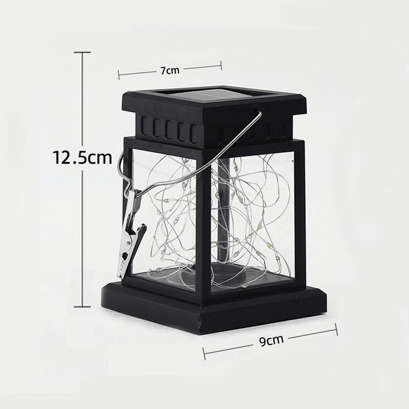 This custom solar-powered lantern blends vintage-inspired design with effortless functionality, creating a mesmerizing glow perfect for any occasion. Three styles for you to choose from, Star lights are divided into colored and warm lights, candle lights are warm lights, and the flickering lights add a romantic atmosphere to the space.