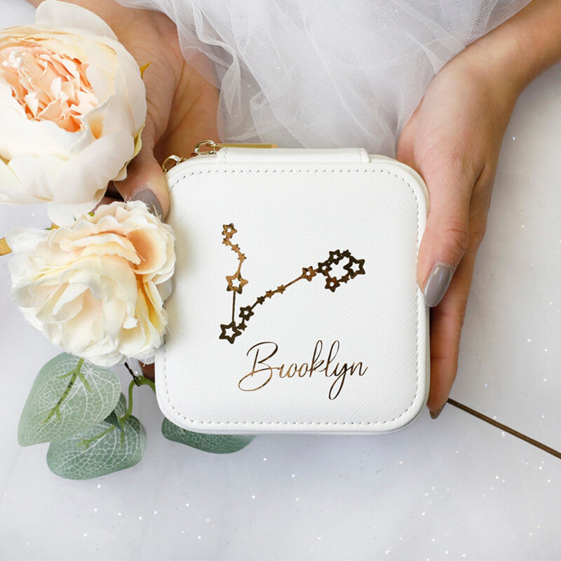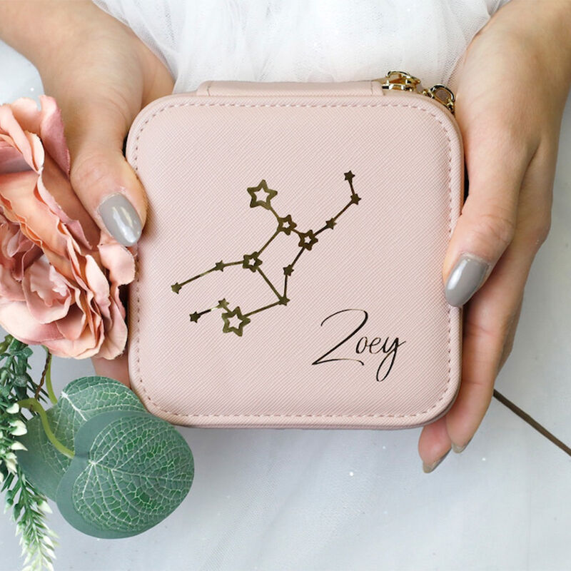 Personalized Square Jewelry Box Custom Birth Constellation and Name Exquisite Gift for Her