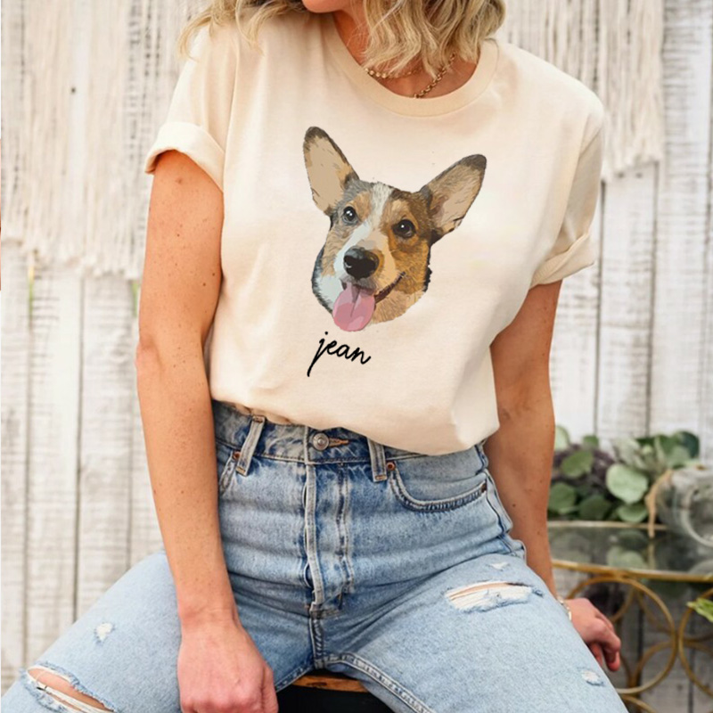 Personalized T-shirt with Custom Pet Headshot and Name for Pet Lover