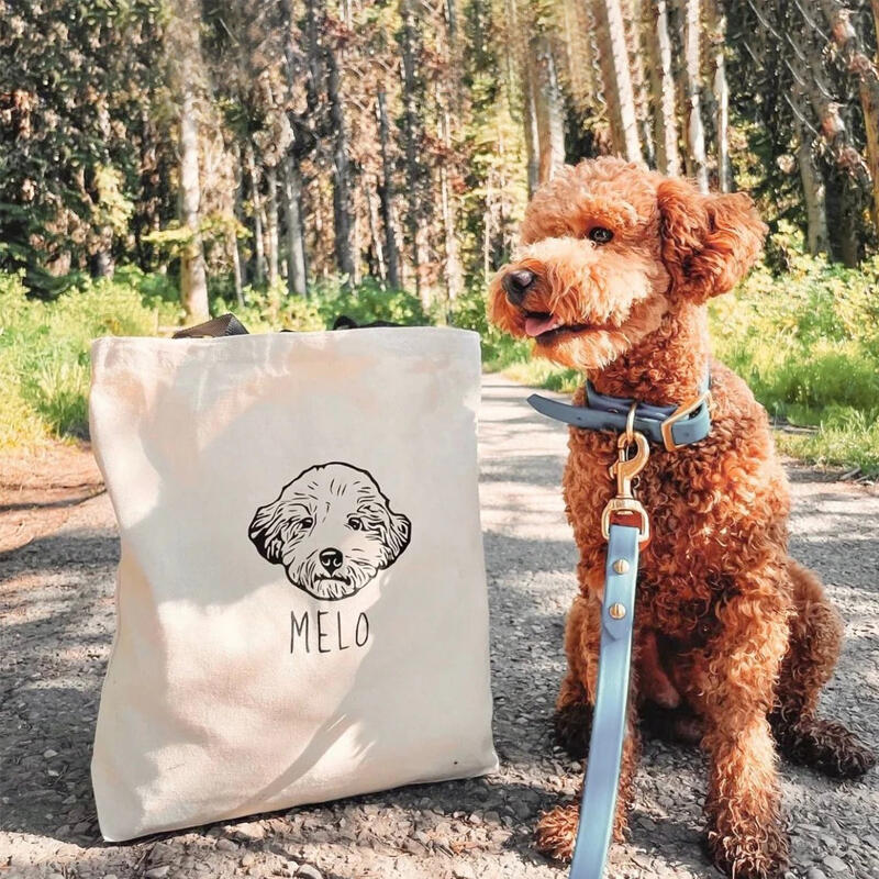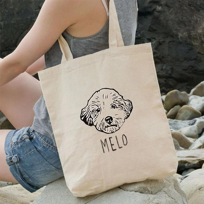 Personalized Tote Bag with Custom Pet Head Line Outline Picture and Name for Pet Lover