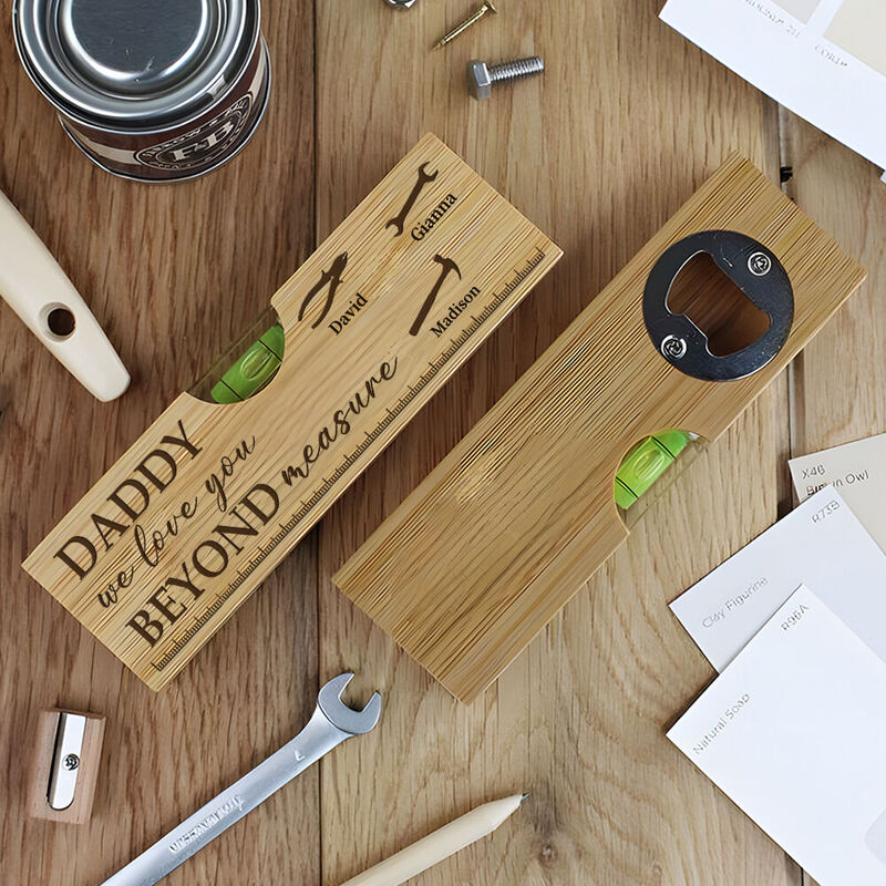 This two-purpose wooden tool combines a bubble level with a smooth bottle opener, making it the perfect practical gift for dad, grandpa, husband, or any man who loves DIY. You can customize it with a name, date, or special message for a truly personal touch!